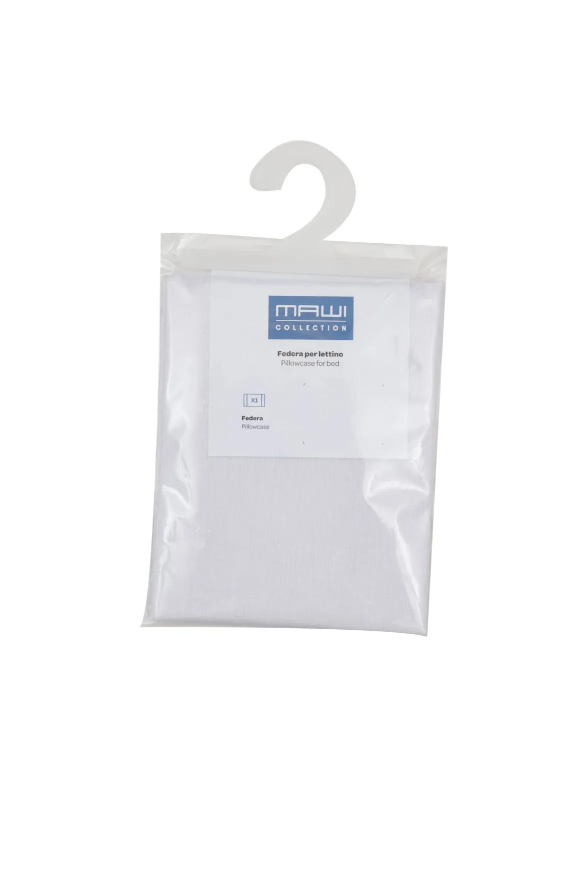 Federa per lettino unisex in tinta unita bianca in morbido e fresco cotone. Coordinabile con tutta l’offerta di lenzuola da lettino a tinta unita o fantasia della linea Mawi. Dimensioni della federa 35*60 cm.