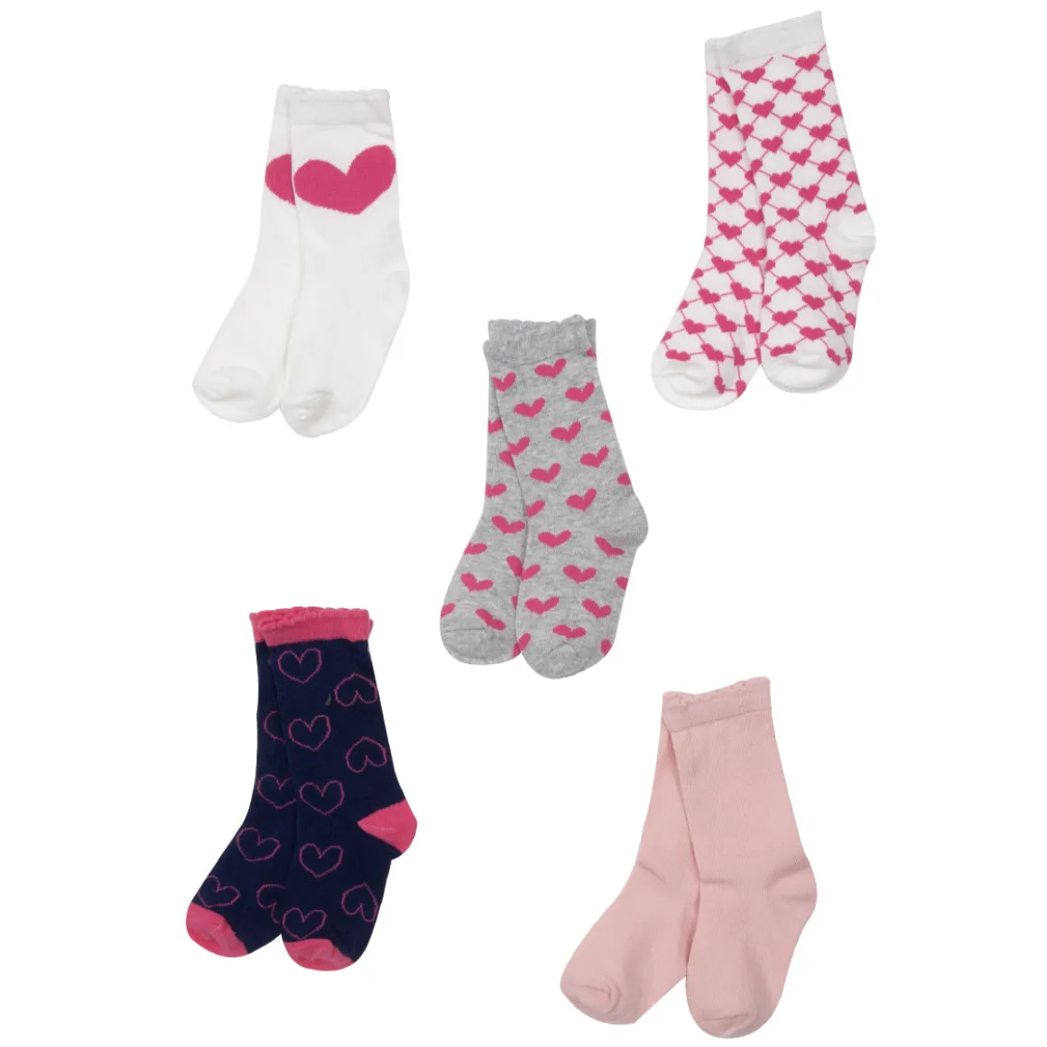 Femminile set per 5 di gambaletti motivo cuori jacquard mixati a tinta unita , in cotone soft . La vestizione è morbida ed avvolgente. Perfetto anche per le occasioni speciali.
