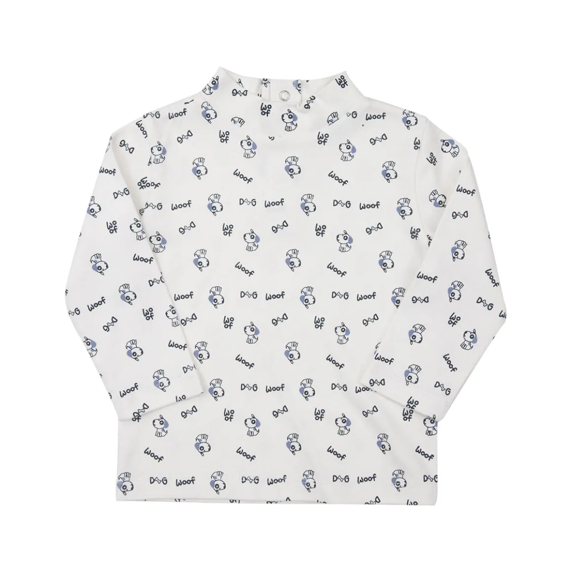 Lupetto in morbido caldo cotone in colore panna con stampa all over. L’apertura sul retro con bottoni a pressione facilita il passaggio testa. Disponibile in diverse varianti.