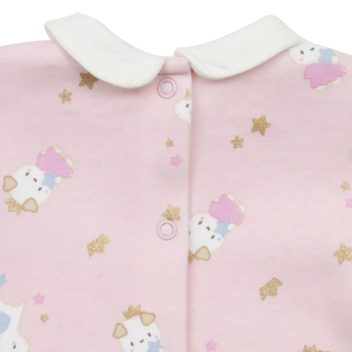 Delizioso set due pezzi in caldo cotone. Top fantasia multicolor animaletti e unicorni con rouches su manica e ghettina con applicazioni tulle su ginocchio.Il capo presenta una comoda apertura sul retro del top. Vestibilità comoda.