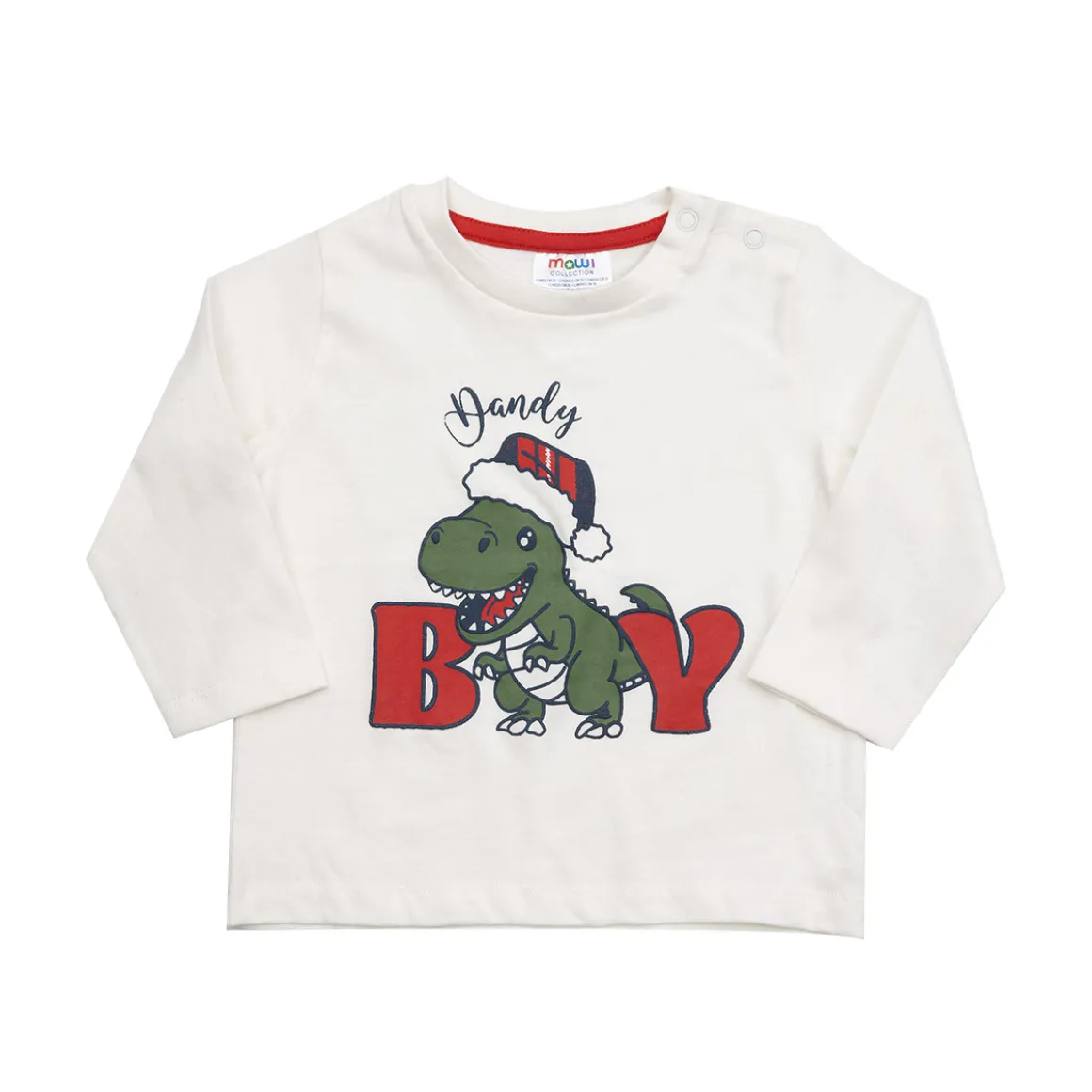 T-shirt manica lunga in morbido in caldo cotone in colore panna, con stampa natalizia. L’apertura sul retro con bottoni a pressione facilita il passaggio testa. Disponibile in diverse varianti.