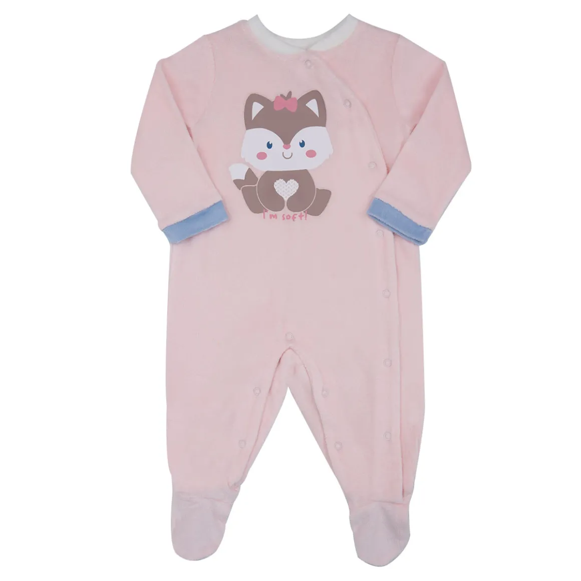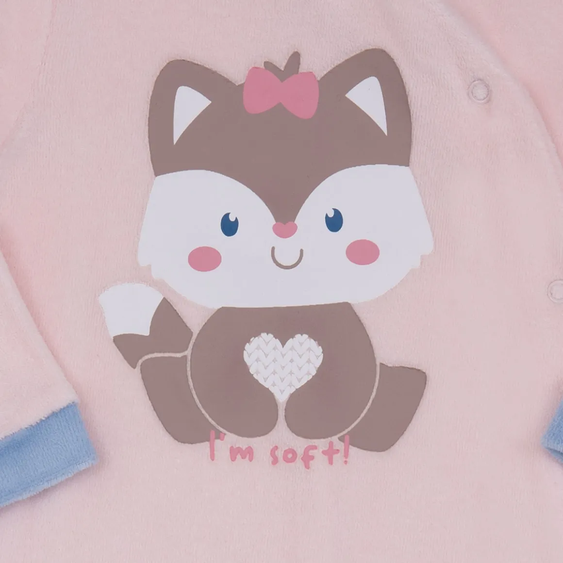 Deliziosa tutina in ciniglia con apertura frontale. Il capo è impreziosito da una dolce volpina . Oltre all’apertura frontale la tutina presenta una comoda apertura entrogamba .Vestibiilità comoda. Modello certificato oeko-tex