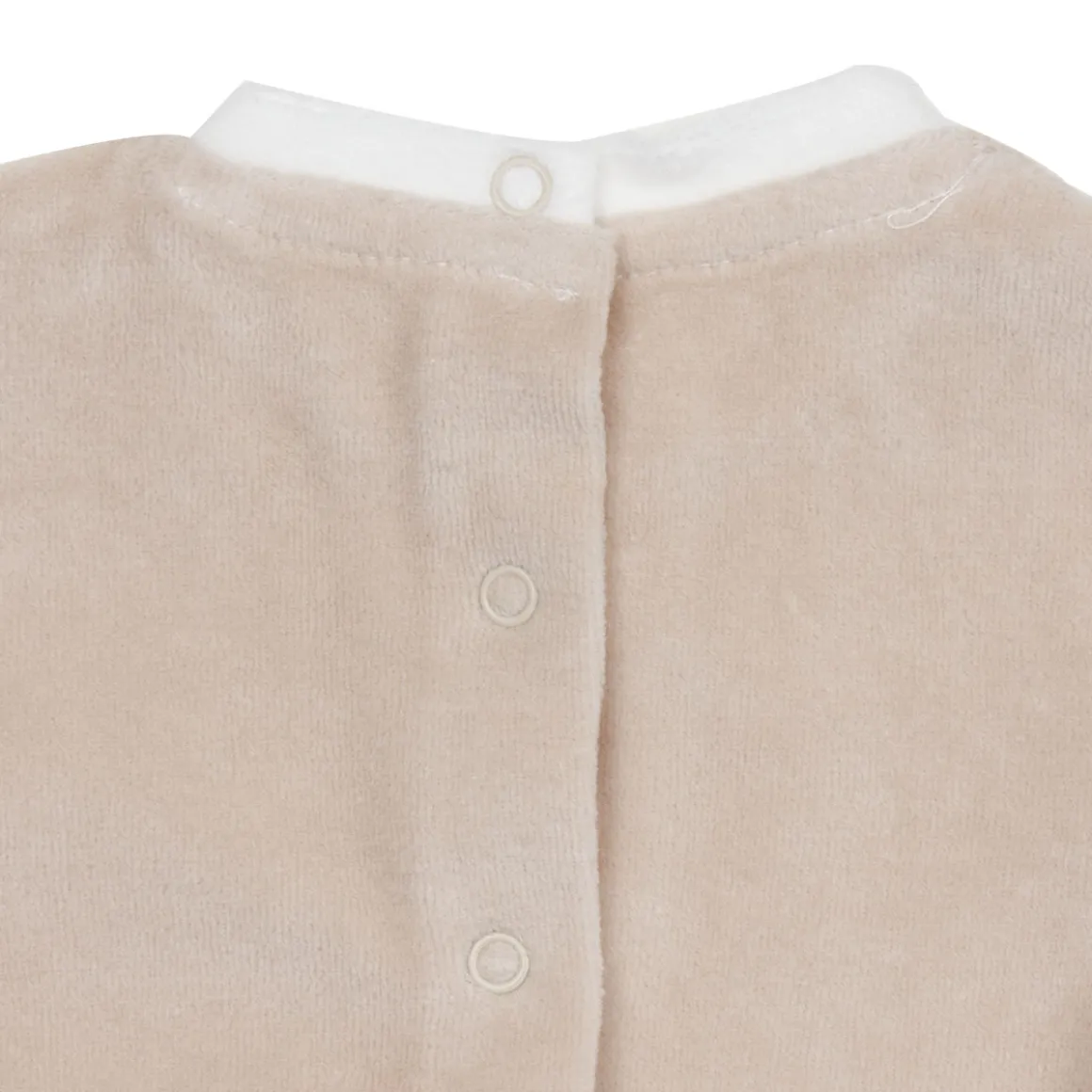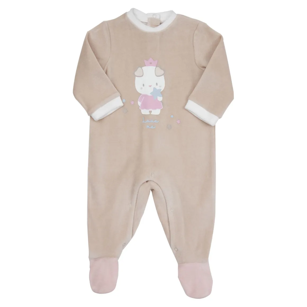 Dolcissima tutina in calda ciniglia beige . Il capo è impreziosito da una stampa orsetta fatina. Oltre all’ apertura sul retro, presenta una comoda apertura entrogamba per facilitare il cambio del pannolino. Vestibilità comoda.