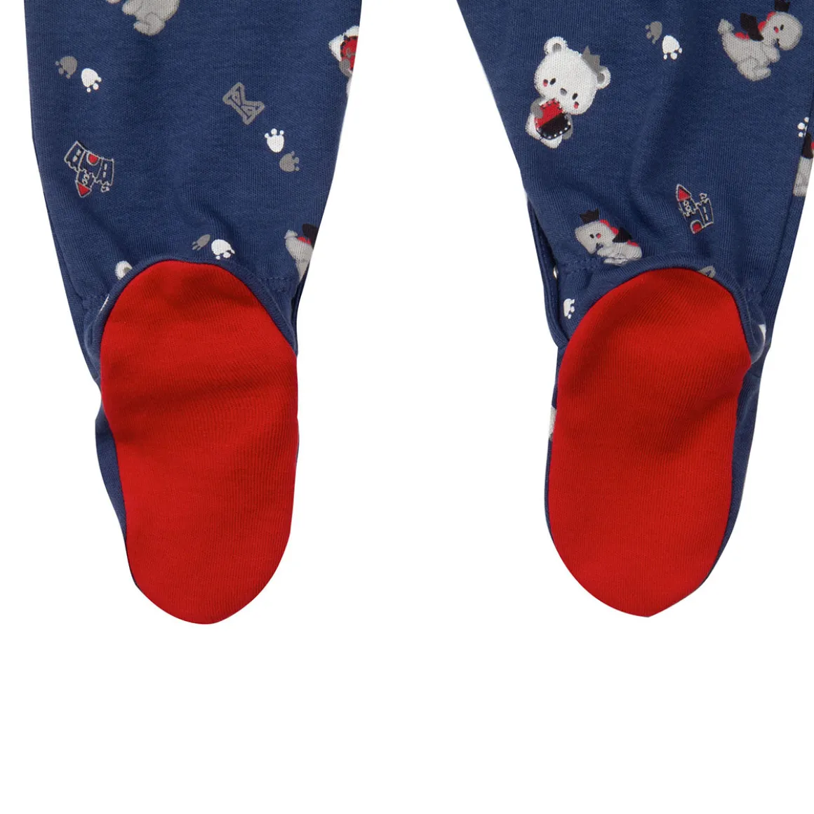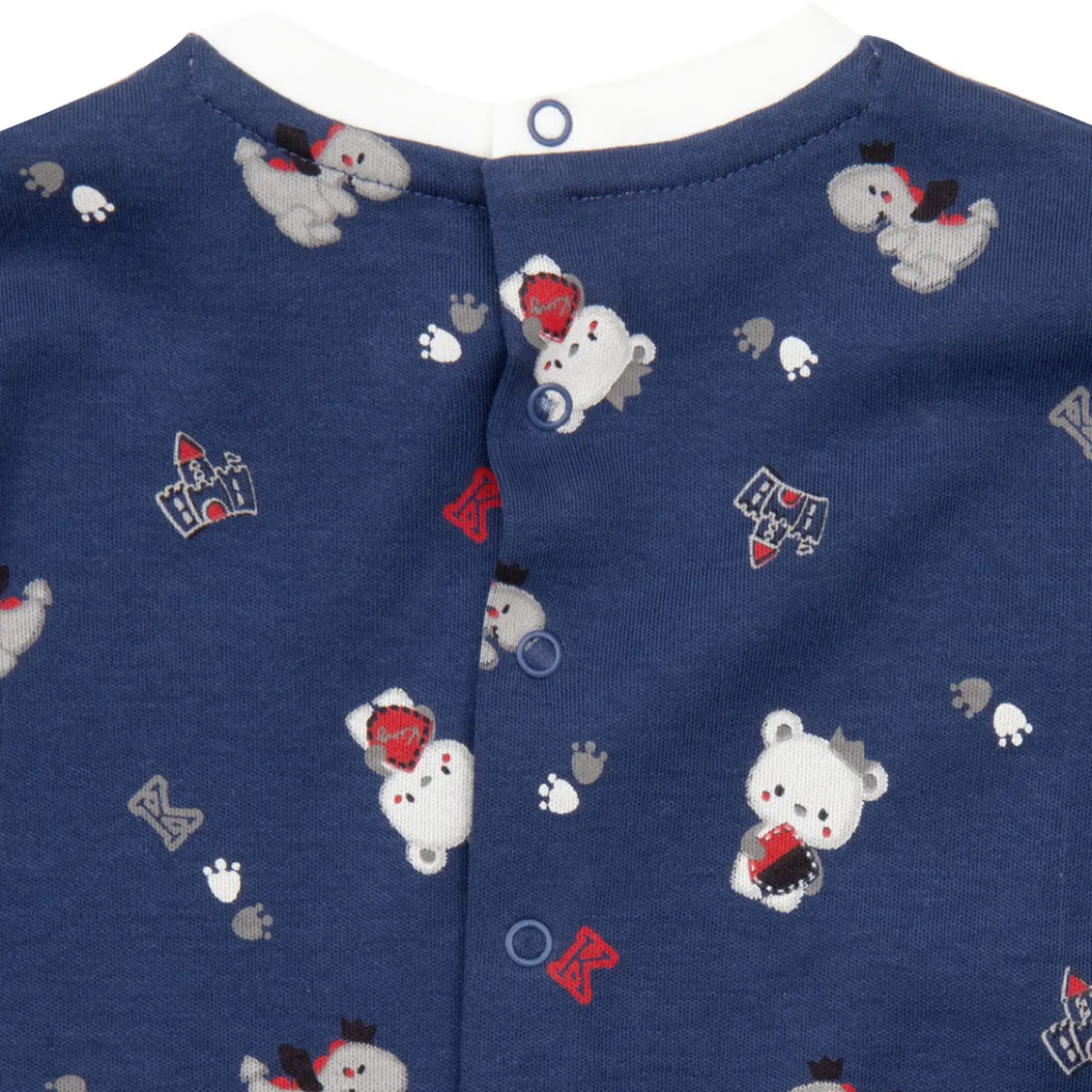 Dolcissima tutina in caldo cotone con fantasia a tema fantasy multicolor su fondo blu. Oltre all’ apertura sul retro, presenta una comoda apertura entrogamba per facilitare il cambio del pannolino. Vestibilità comoda.