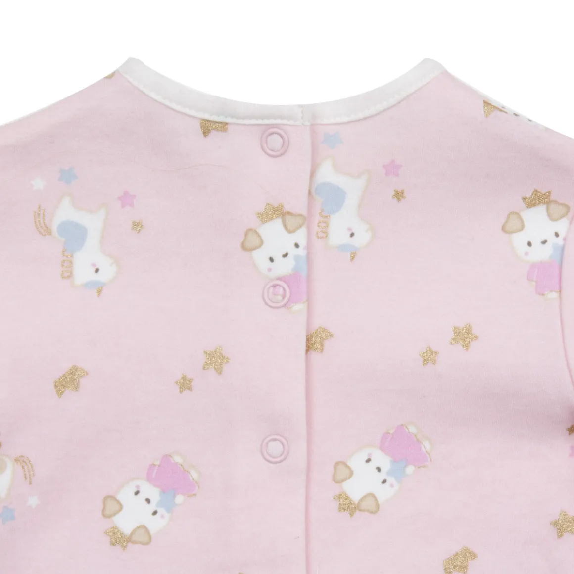 Dolcissima tutina in caldo cotone con fantasia a tema fantasy multicolor su fondo rosa intenso. Oltre all’ apertura sul retro, presenta una comoda apertura entrogamba per facilitare il cambio del pannolino. Vestibilità comoda.
