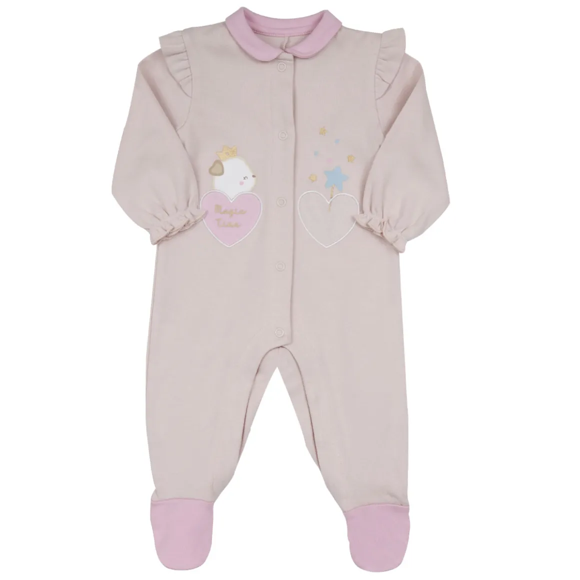 Dolcissima tutina in caldo cotone a tema fantasy con preziose applicazioni di tulle a forma di cuore. Oltre all’ apertura frontale presenta una comoda apertura entrogamba per facilitare il cambio del pannolino. Vestibilità comoda.