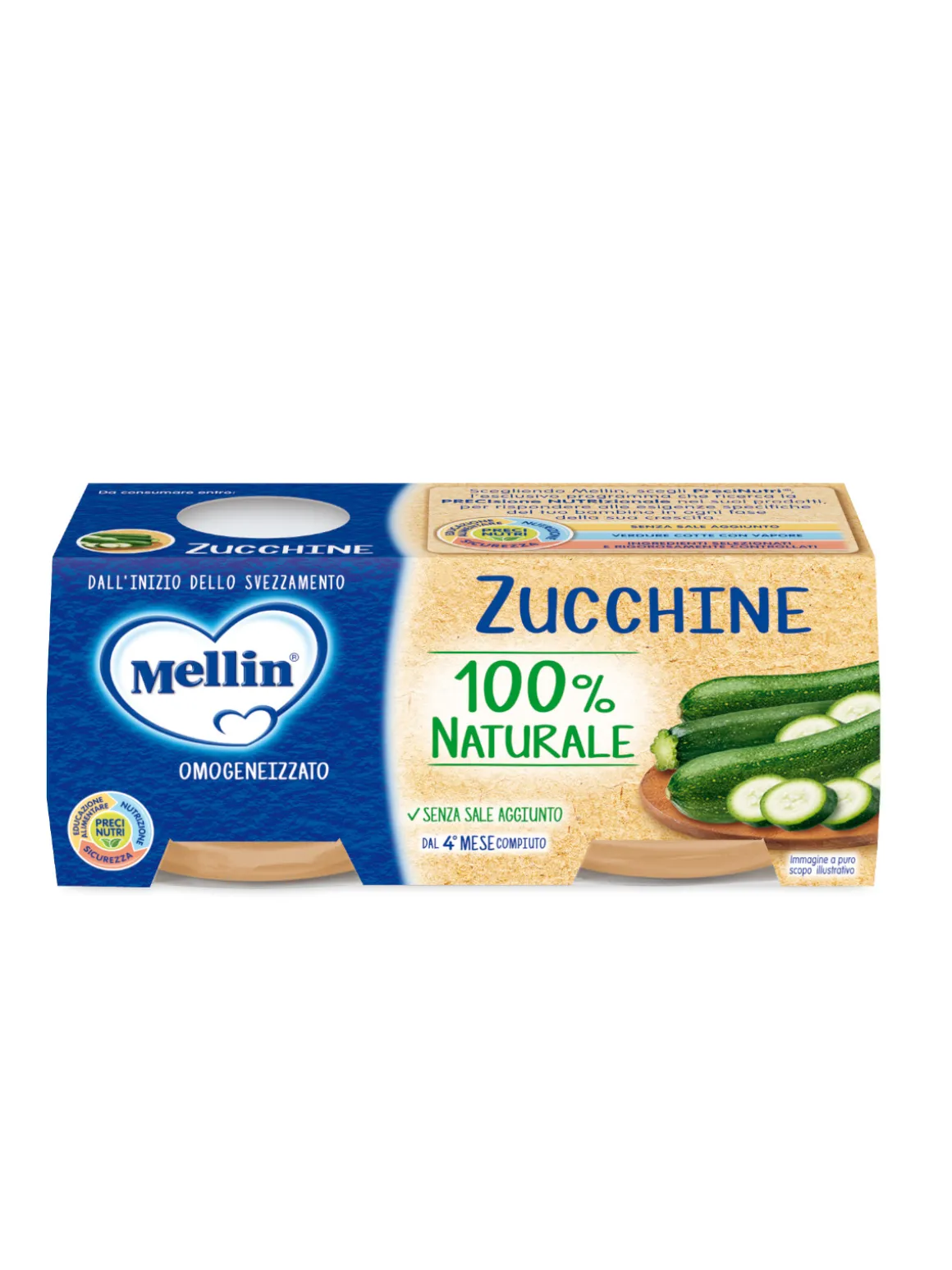 L’omogenizzato di zucchine Mellin con PreciNutri è senza sale aggiunto, senza conservanti e coloranti, è cotto al vapore per salvaguardare le qualità organolettiche ed è sottoposto a rigorosi controlli qualitativi. Indicato dal 4° al 36° mese salvo diverso parere del Pediatra.