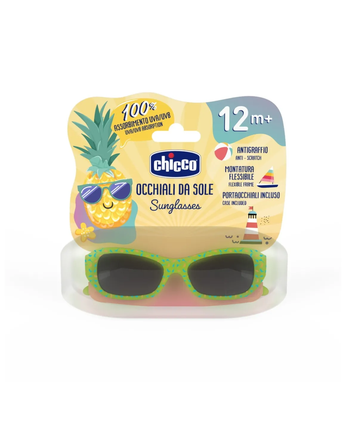 Gli occhiali da sole Chicco per bambini offrono il 100% di protezione dai raggi UVA e UVB. Le lenti sono resistenti e tutte in policarbonato per un’ottima resistenza ai graffi. Design colorato e alla moda per una gamma completa dagli 0 mesi fino ai 5 anni.