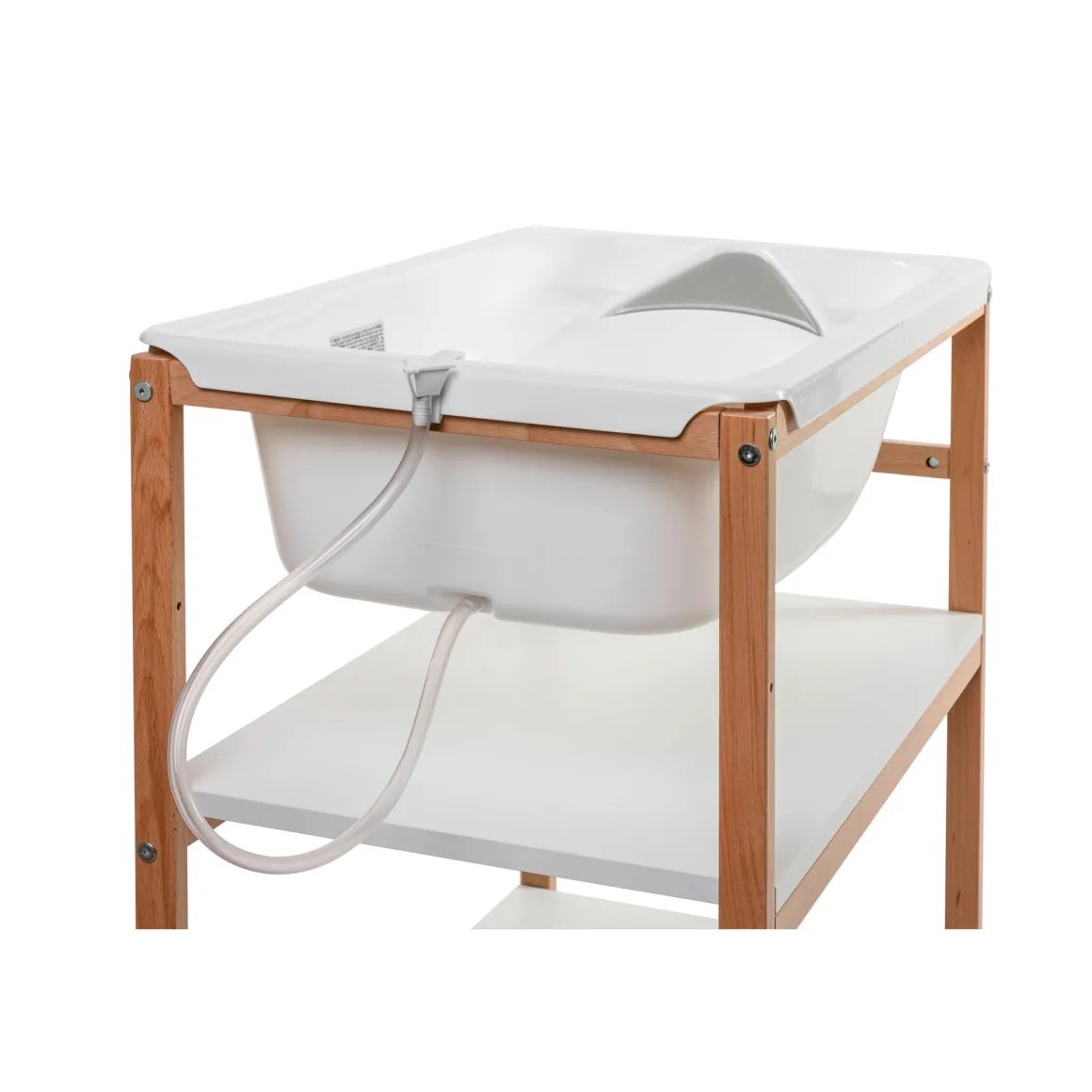 La parte inferiore con la vaschetta si può sfilare e portare ovunque. Kit di svuotamento – Due comode mensole per riporre il necessario. Colori: bianco e naturale.