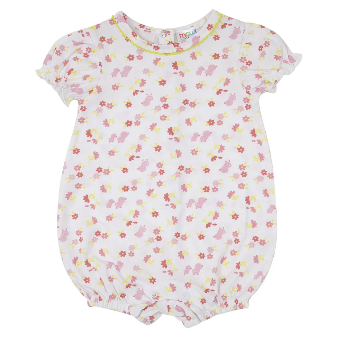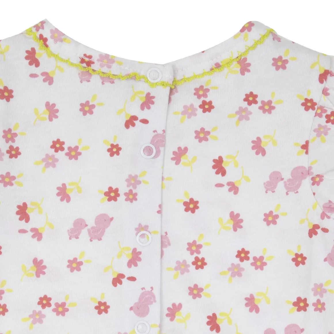 Fresco pagliaccetto jersey da bambina. Il capo si sviluppa su base bianca con stampa allover multicolor a tema floreale. La vestibilità è mobirda e pratica grazie a bottoni a clip sul retro e sul cavallo. Accessori non in vendita. La confezione contiene solo il capo d’abbigliamento