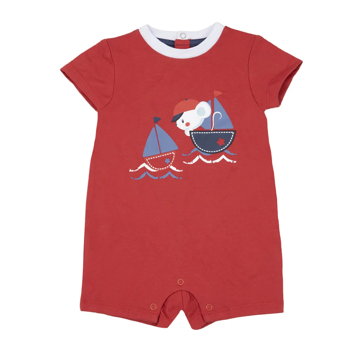 Fresco pagliaccetto da bambino. Il capo si presenta in tinta unita rosso con stampa simpatica e girocollo bordato bianco. La vestibilità è morbida e pratica grazie ai bottoni a clip sulla schiena e sul cavallo. Accessori non in vendita. La confezione contiene solo il capo d’abbigliamento