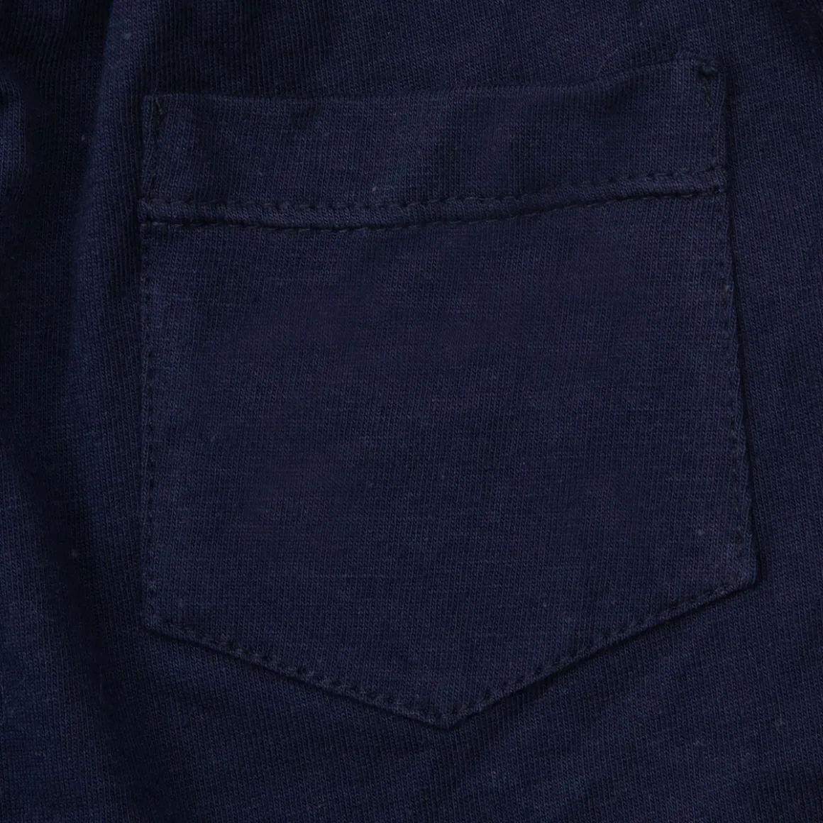 Calzoncino bermuda da bambino. Il capo si presenta in colorazione blu scuro con stampa simpatica su una gamba e strisce orizzontali in fondo alle gambe. La vestibilià è morbida e pratica grazie a elastico regolabile in girovita. Modello con tasca posteriore. Accessori non in vendita. La confezione contiene solo il capo d’abbigliamento