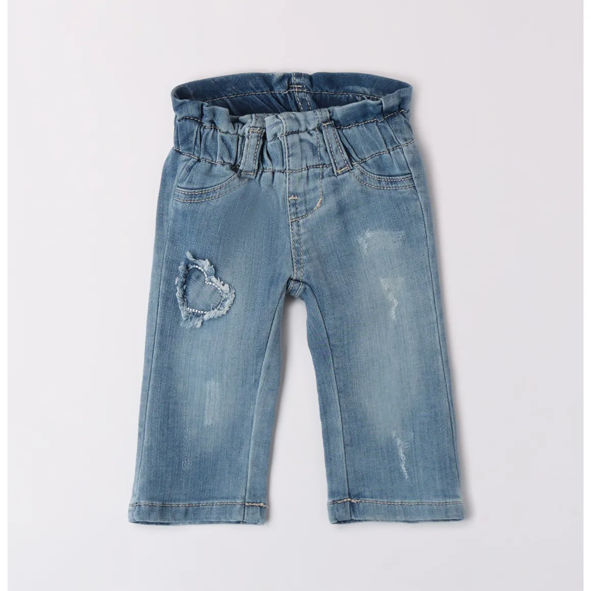 Jeans per bimba iDO 1-24 mesi realizzati in denim maglia di cotone stretch. Il modello presenta vita elasticizzata, tasche laterali e gamba ampia a zampa. Scopri tutta la selezione di Jeans bimba iDOMini sul sito!