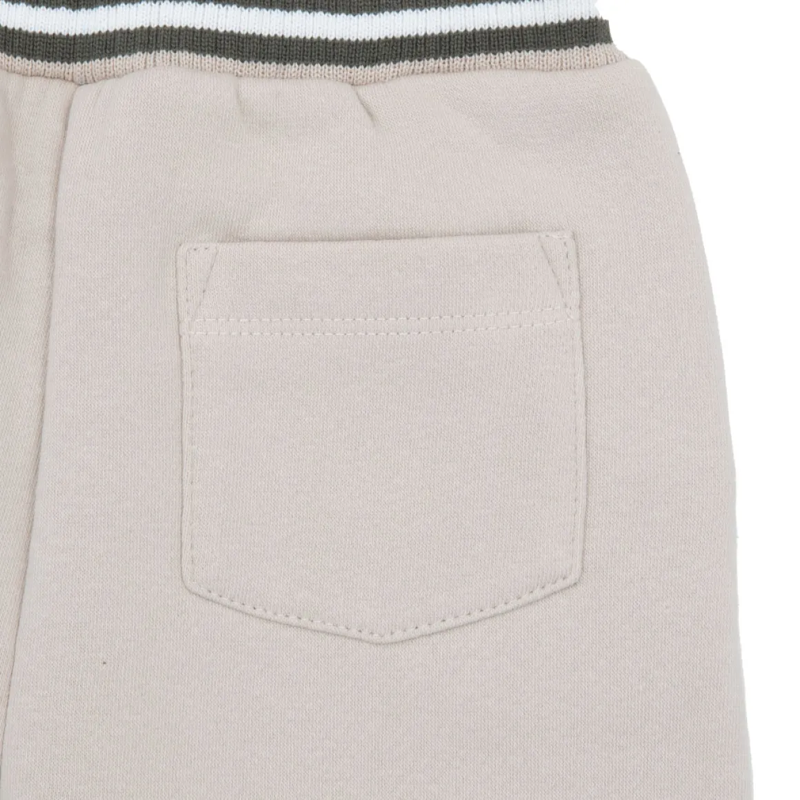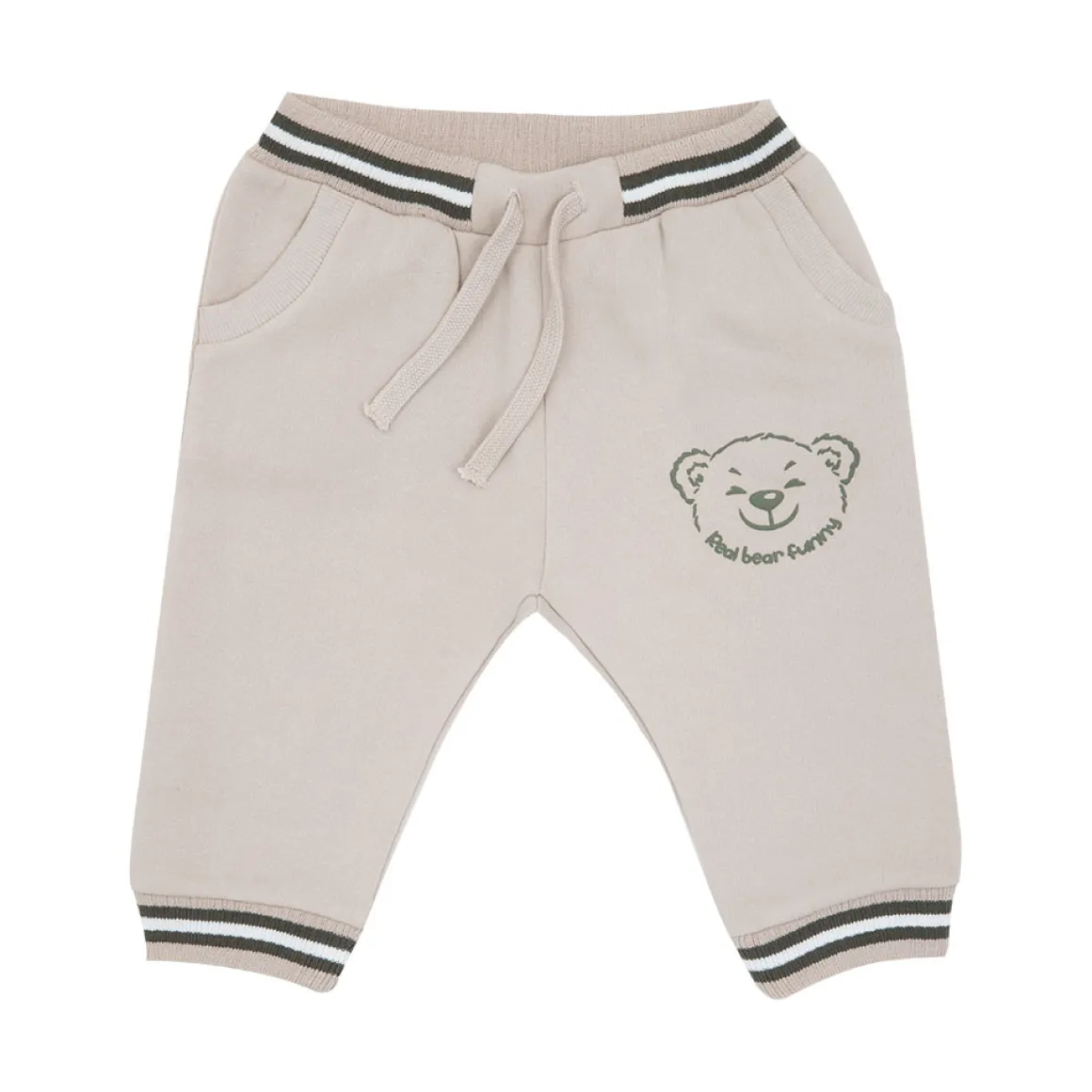 Casual pantalone felpato da bambino. Il capo si sviluppa in total panna con stampa piccola “orsetto” su una gamba e bordature nere e bianche. Modello con tasche a taglio obliquo. La vestibilità è morbida e regolabile grazie a elastico in girovita. Il pantalone semplice è facilmente combinabile. Accessori non in vendita. La confezione contiene solo il capo d’abbigliamento