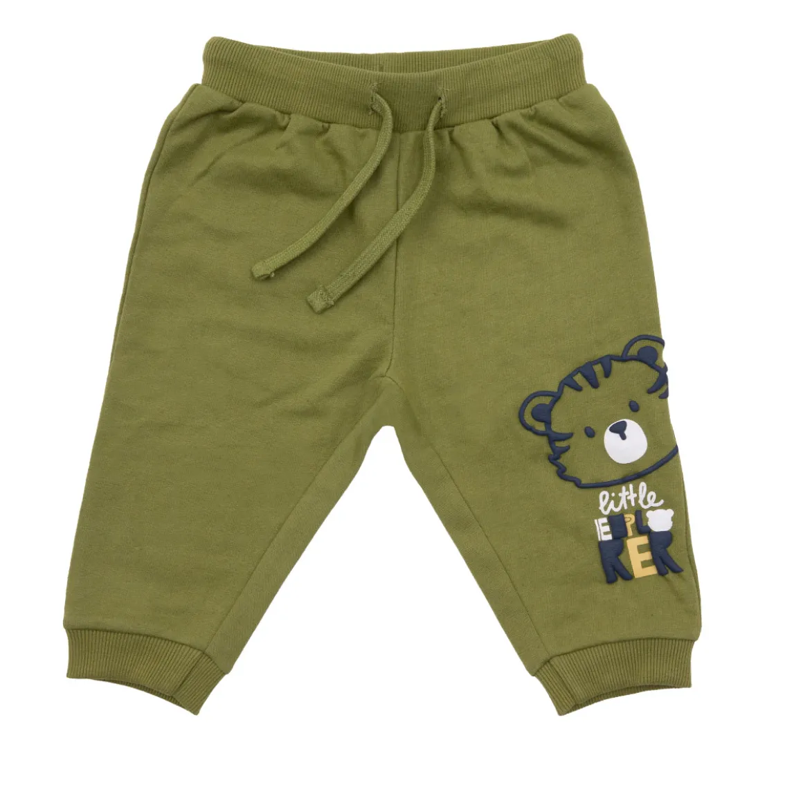 Casual pantalone felpato da bambino. Il capo si sviluppa in total verde e presenta patch a tema orsetto sulla gamba. La vestibilità è morbida e pratica grazie a elastico in girovita regolabile. Il pantalone da bambino è adatto per occasioni casual/sportive. Accessori non in vendita. La confezione contiene solo il capo d’abbigliamento