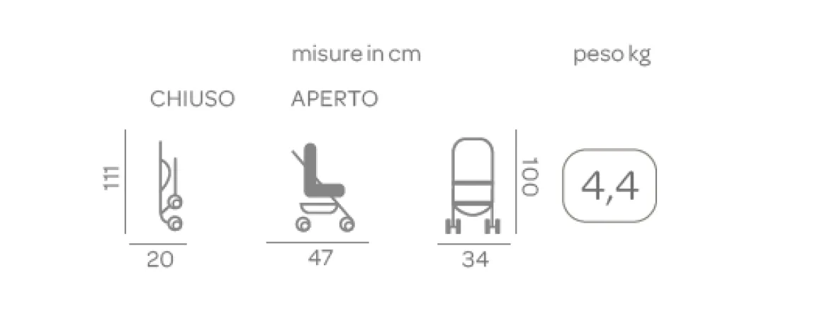 Jolly è il passeggino pratico e leggero con chiusura ad ombrello adatto a bambini dai 6 mesi ai 3 anni circa, max 15 kg.