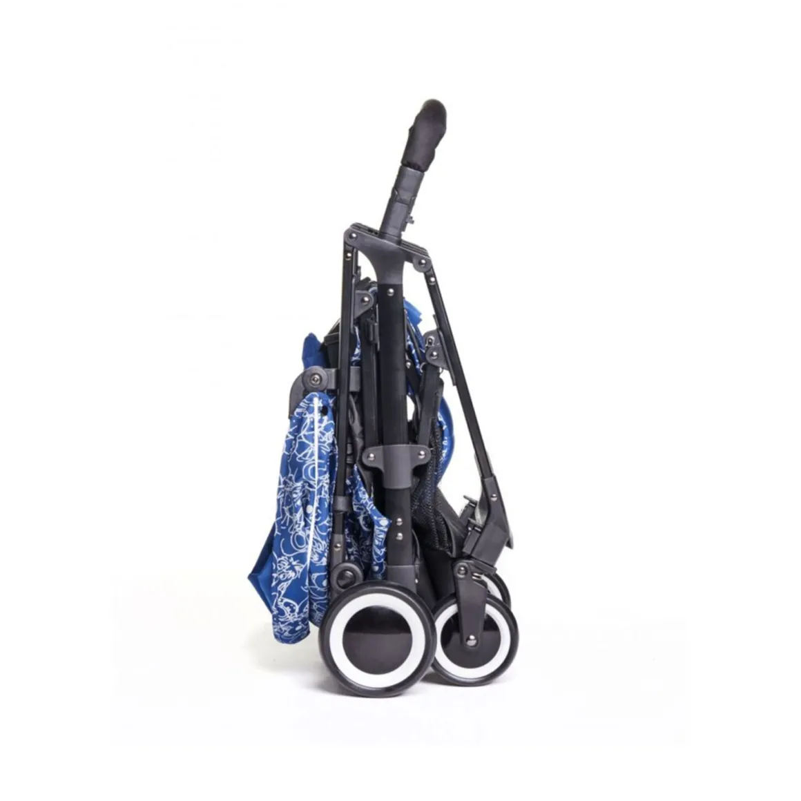 Dotato di ruote piroettanti anteriori, freno posteriore gemellato, maniglione unito e regolabile in altezza, capottina parasole con rete per areazione e sistema di cinturine a cinque punti. Da chiuso sta in piedi da solo.