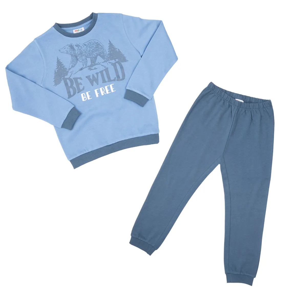 Pigiama due pezzi felpato da bambino. Il capo si compone di maglia a maniche lunghe azzurra con stampa grande “orso” e pantaloni in tinta unita blu coordinati. La vestibilità è morbida e pratica grazie a elastico in girovita, su polsini e caviglie. Accessori non in vendita. La confezione contiene solo il capo d’abbigliamento