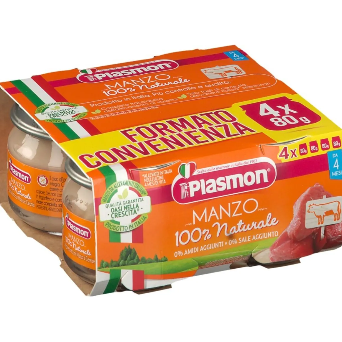 Prodotto omogeneizzato con carne di manzo. Prodotto indicato a partire dal 4° mese compiuto, salvo diverso parere del Pediatra. – Omogeneizzato di carne – Prodotto sterilizzato; Non usiamo coloranti, né conservanti, come per legge sugli alimenti per l’infanzia. Senza sale aggiunto. . Confezione da 320 g (4 vasetti da 80g cad.)