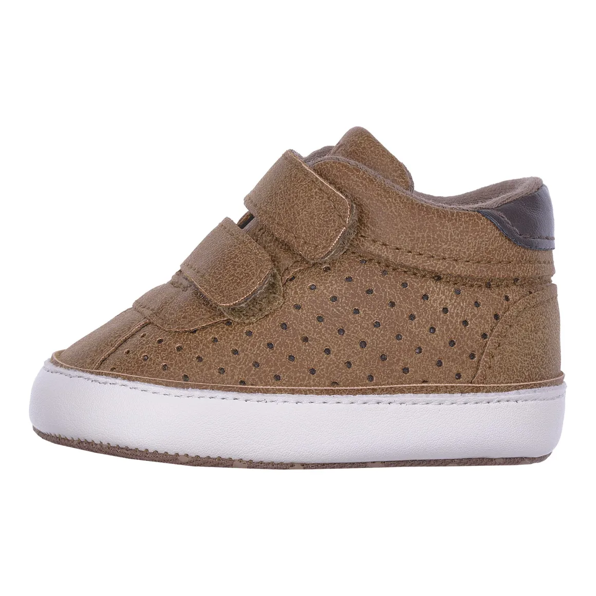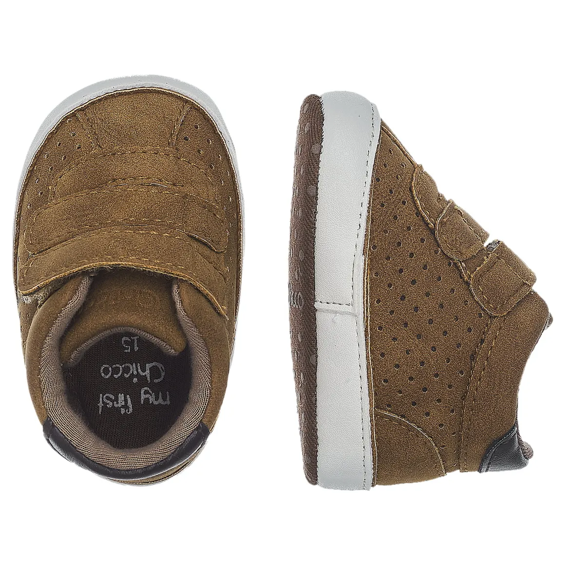 Polacchino Chicco con doppio strappo per neonato. Colore marrone. Suole in stoffa. Traspiranti. Calzata classica e confortevole. Ideali per un look casual e alla moda. Adatti ad ogni occasione.