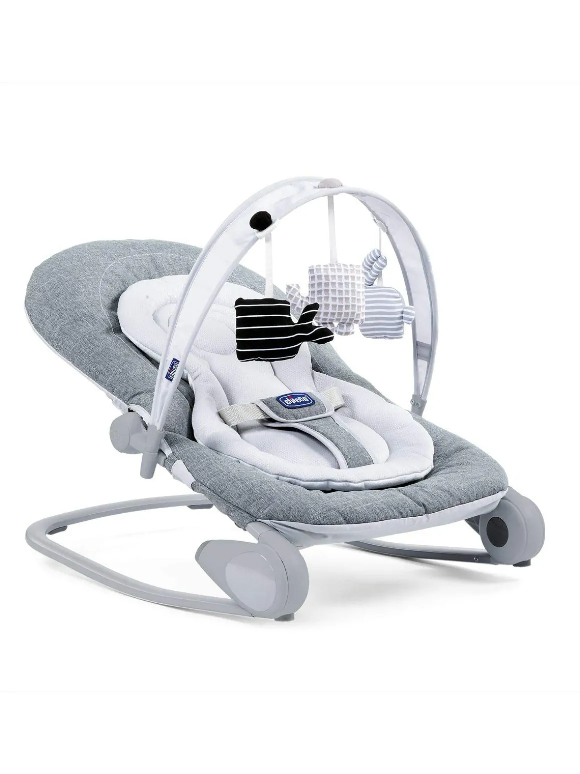 Sdraietta comoda e accogliente con un’innovativa barra da gioco con bambole in tessuto e sistema scorrevole per favorire lo sviluppo visivo del bambino. Lo schienale è reclinabile in 4posizioni e include un pratico riduttore per il neonato. Le gambe consentono di utilizzare la sdraietta in posizione fissa o anche come dondolo per sdraiare il bambino e rilassarsi.