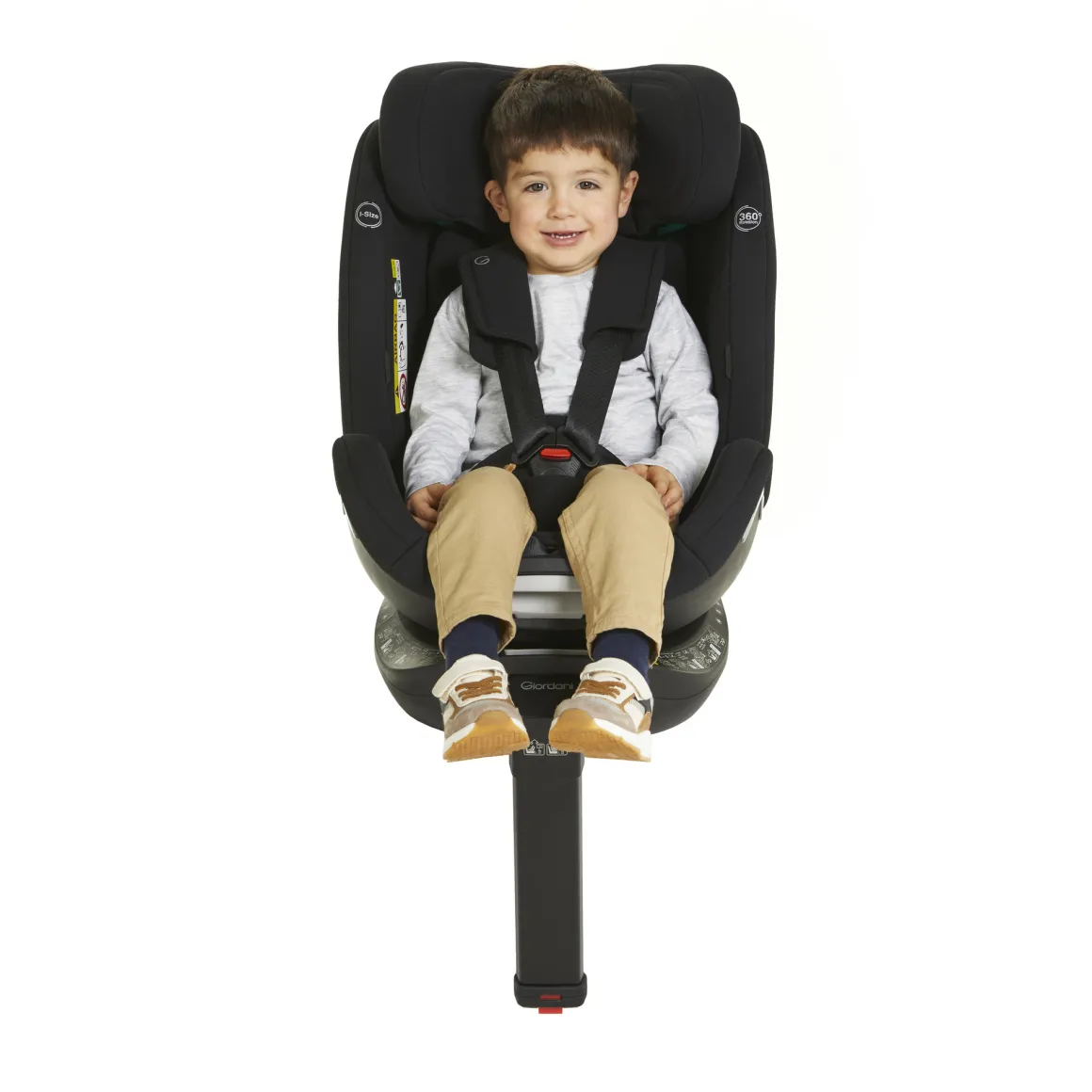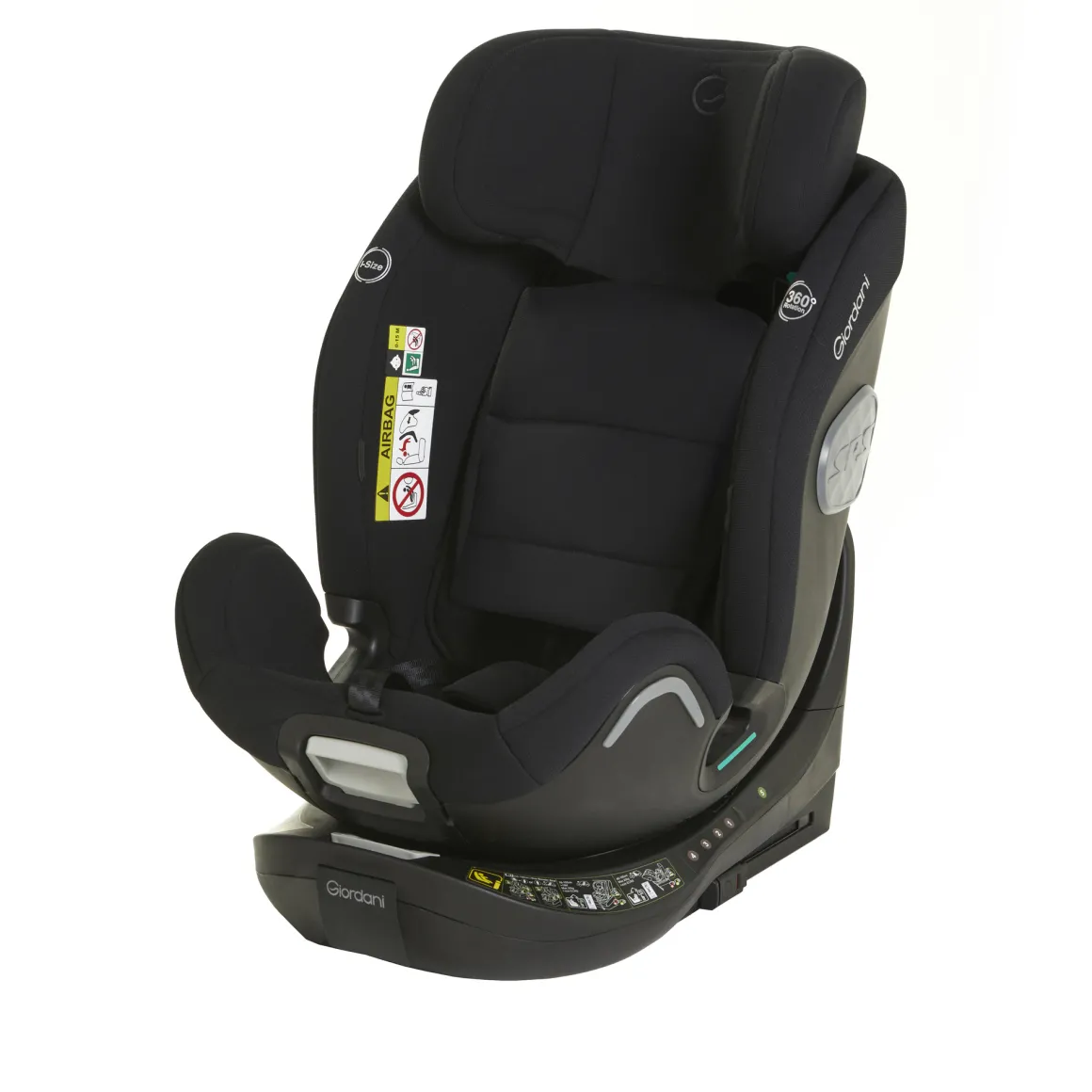 Seggiolino auto Giordani 40/150 cm i-Size, evolutivo, reclinabile e con scocca girevole.