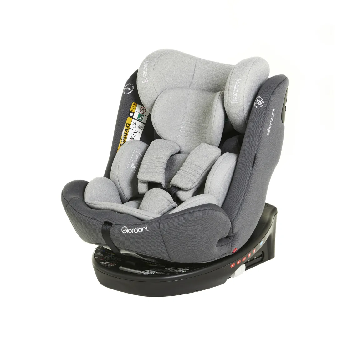 Il seggiolino auto Titano di Giordani è dotato di connettori isofix e cintura top tether, oltre che della rotazione della seduta di 360° per un’ agevole posizionamento del bambino nel seggiolino.