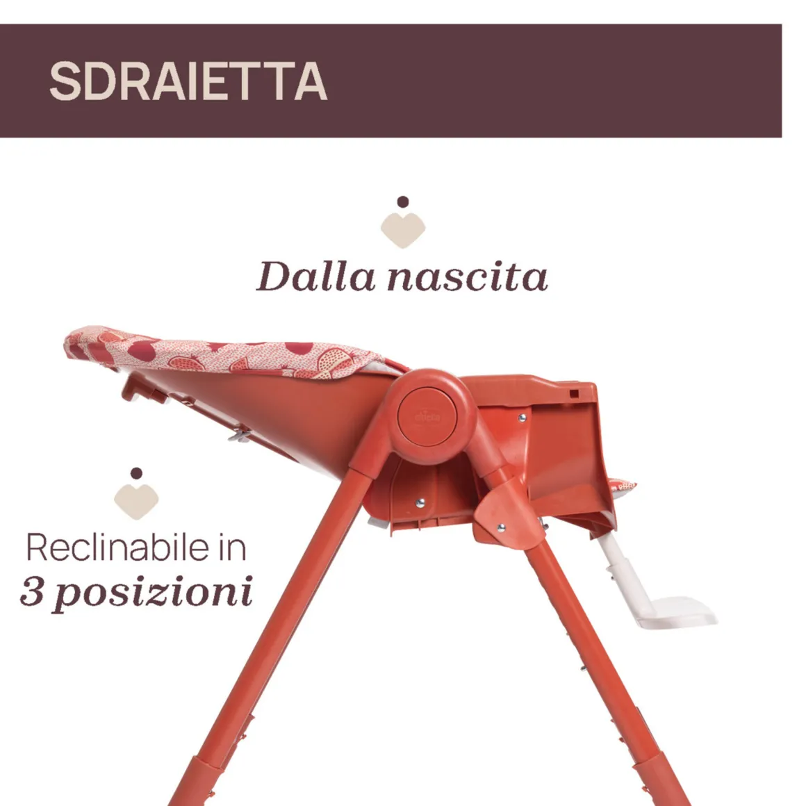 COMFORT DALLA NASCITA: lo schienale può essere reclinato in 3 diverse posizioni per utilizzarlo fin dai primi giorni o per rilassarsi dopo i pasti