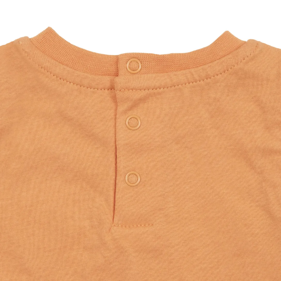Canotta e shorts jersey da bambino. Il capo superiore si presenta in arancio con stampa simpatica sul davanti e comodi bottoni a clip sul retro per massimizzare la comodità e la praticità; il capo inferiore abbinato si presenta di colore blu con comodo elastico regolabile in girovita.
