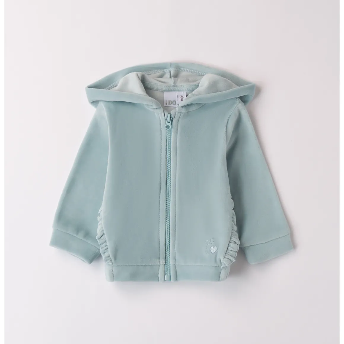 Completo per bimba neonata iDO 3 pezzi, 1-24 mesi, realizzato in cotone. Il completo è composto da: felpa, maglietta e pantalone. La felpa presenta apertura frontale con zip e ruches in applicazione ed è realizzata in ciniglia. La maglietta è in fantasia tinta unita, in interlock 100% cotone con grafica frontale. Il pantalone, in ciniglia, ha vita elasticizzata con fiocco in applicazione e polsini elasticizzati sul fondo. La fullzip ha il cappuccio. Scopri tutta la selezione di Completi Bimba iDOMini sul sito!