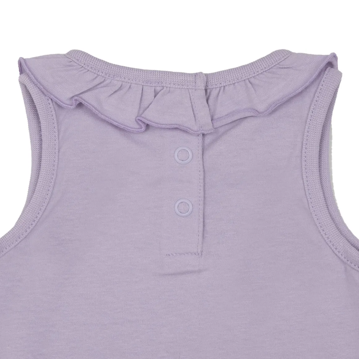 Set estivo da bambina composto da canotta e pantalcino. Il capo superiore si sviluppa su base lilla con stampa cavalluccio marino sul davanti e colletto morbido; la parte inferiore si sviluppa in tinta unita rosa con frill. La vestibilità è morbida e pratica grazie ai bottoni a clip sulla schiena e elastico in girovita regolabile. Accessori non in vendita. La confezione contiene solo il capo d’abbigliamento