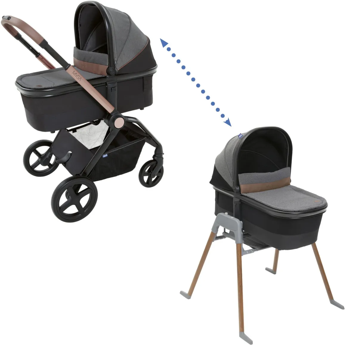 Lullaglide è il supporto domestico intelligente e versatile che estende l’esperienza di benessere di Chicco dalle passeggiate all’aperto al comfort di casa. Con Lullaglide, i genitori possono continuare a usare i trio Mysa, Best Friend e Seety a casa, garantendo ai loro piccoli il riposo dopo una piacevole passeggiata. Lullaglide è il primo e unico supporto che vanta un delicato movimento a dondolo, offrendo ulteriori momenti di relax al bambino. È possibile passare facilmente dalla modalità fissa a quella dondolo con un semplice gesto, permettendovi di coccolare e calmare il vostro bambino ogni volta che sarà necessario. Utilizzando gli adattatori Mysa Fast-in, da acquistare a parte, Lullaglide è compatibile con il seggiolino auto Kory i-Size, con i Sistemi Modulari Chicco Seety e Best Friend.