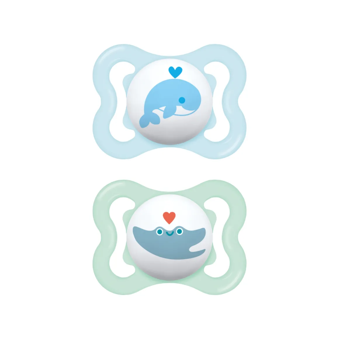 Mam Air set da 2 ciucci in silicone – ciuccio morbido grazie al design innovativo e facilmente accettato dai bimbi. La pelle dei bimbi è particolarmente sensibile e si irrita facilmente. Con il set da 2 ciucci dal design innovativo, Mam ha voluto creare un prodotto anti-irritazione.