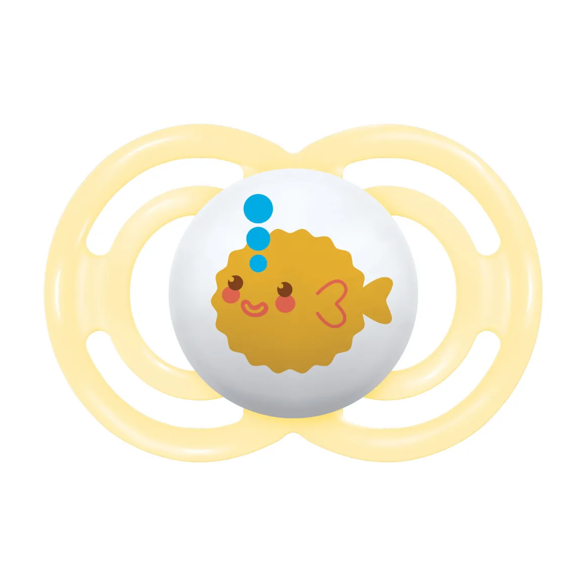 Inoltre il ciuccio è in morbido silicone skinsoft, così naturale da essere istintivamente accettato dal 94% dei bimbi². Grazie alla forma simmetrica il ciuccio può essere inserito in bocca in qualsiasi verso. Ampi fori di ventilazione e mascherina dai bordi arrotondati assicurano il passaggio dell’aria e un contatto delicato.
