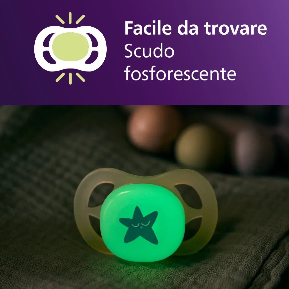 Tranquillità e comfort sin dal primo giorno. Il ciuccio Philips Avent Ultra Start Nighttime è progettato per adattarsi alla boccuccia del tuo bambino e può essere utilizzato in totale sicurezza fino ai sei mesi di età. Sollievo, comfort e sicurezza garantiti anche grazie al suo design fluorescente. Realizzato per l’80% con materiali di origine vegetale.*