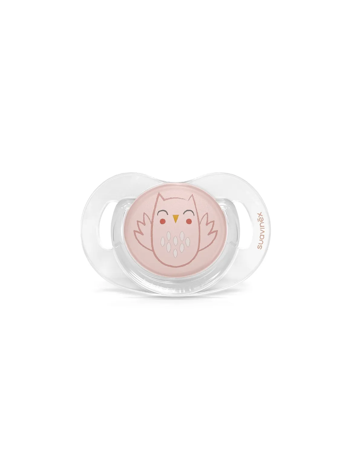 Succhietto nuova collezione bonhomia con tettina sx pro. 0-6 mesi. decoro civetta rosa