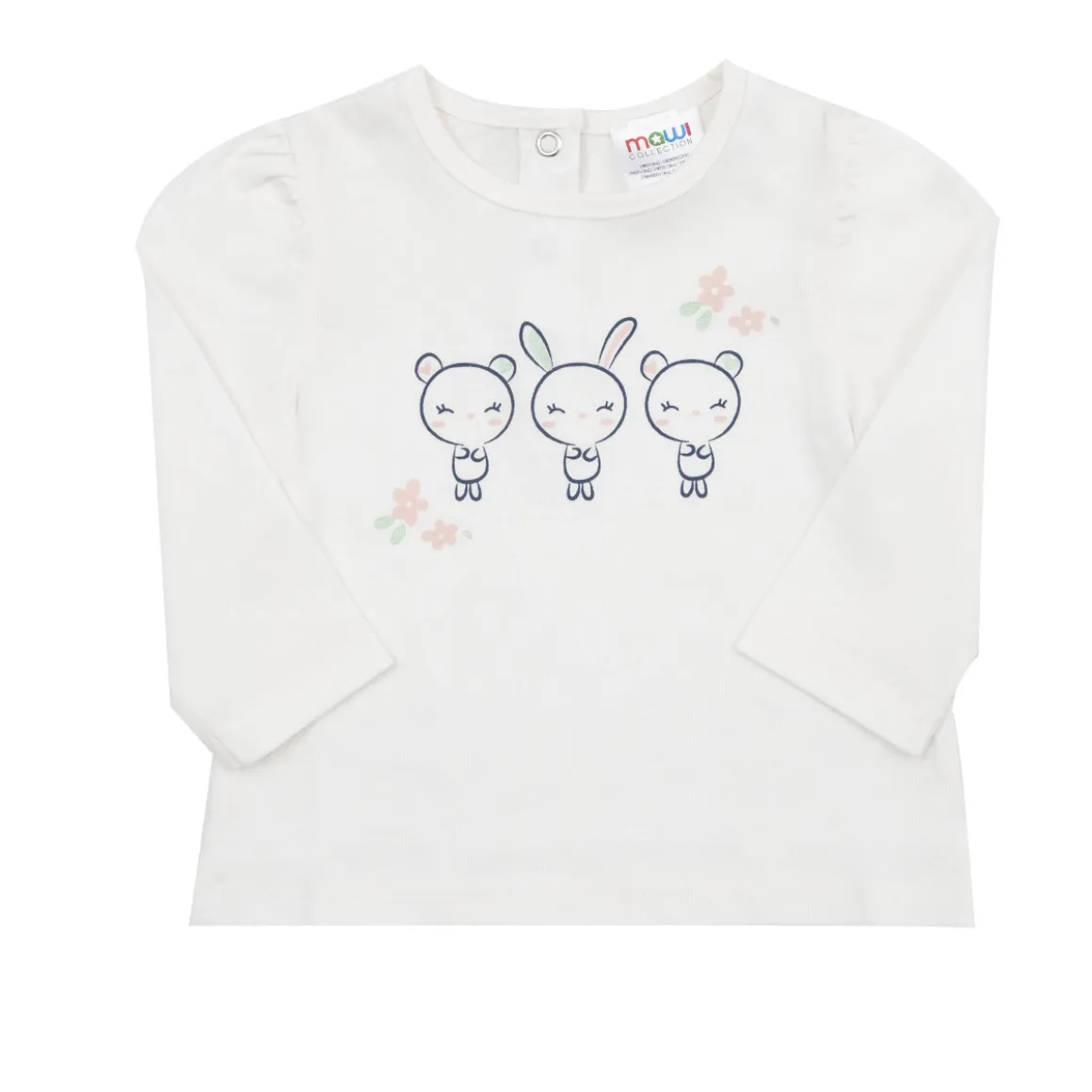 Casual t-shirt manica lunga jersey da bambina. Il capo si sviluppa su base bianco panna con stampa animaletti simpatici sul davanti. La vestibilità è morbida e pratica grazie ai bottoni a clip sul retro. La t-shirt da bambina è facilmente combinabile per vari look.Accessori non in vendita. La confezione contiene solo il capo d’abbigliamento