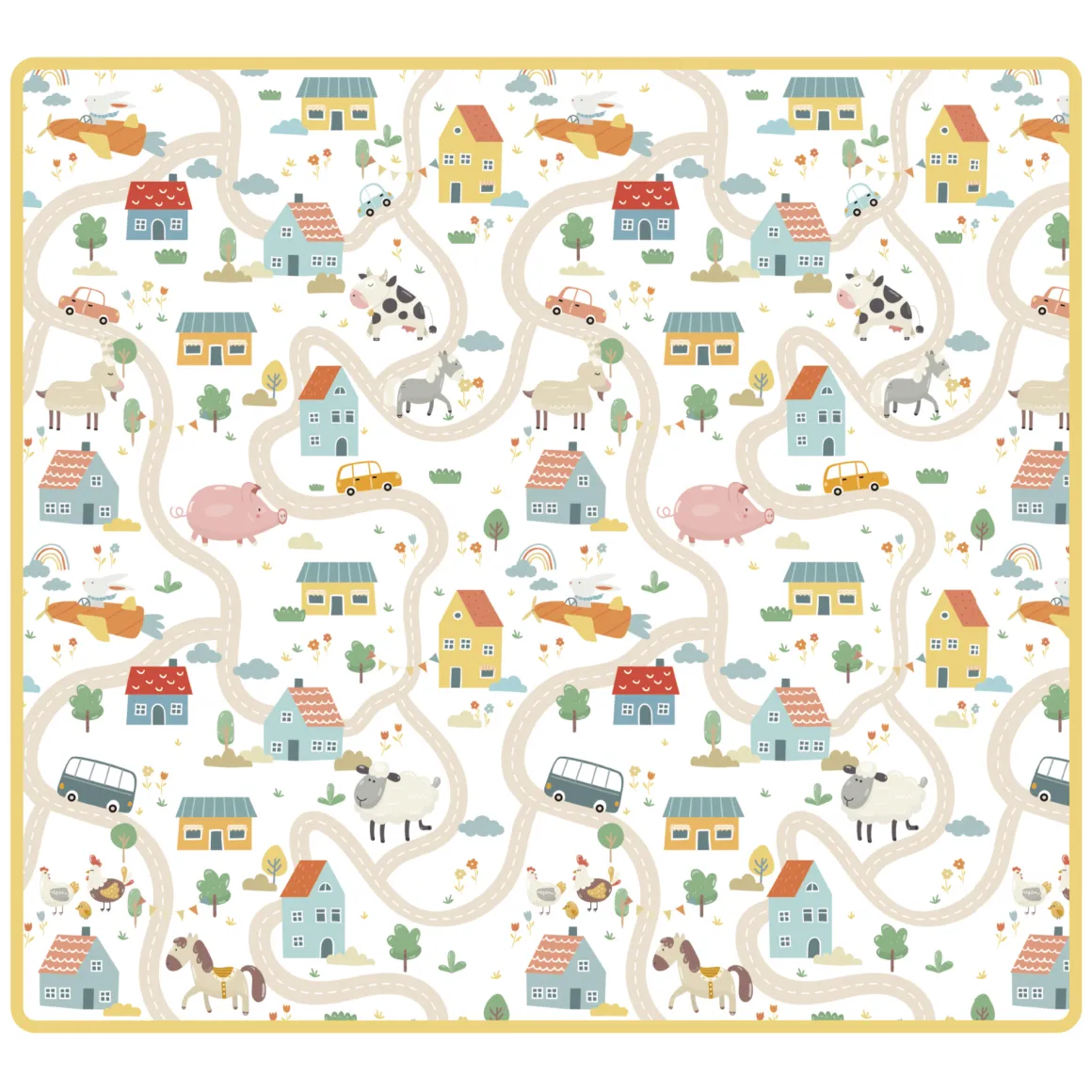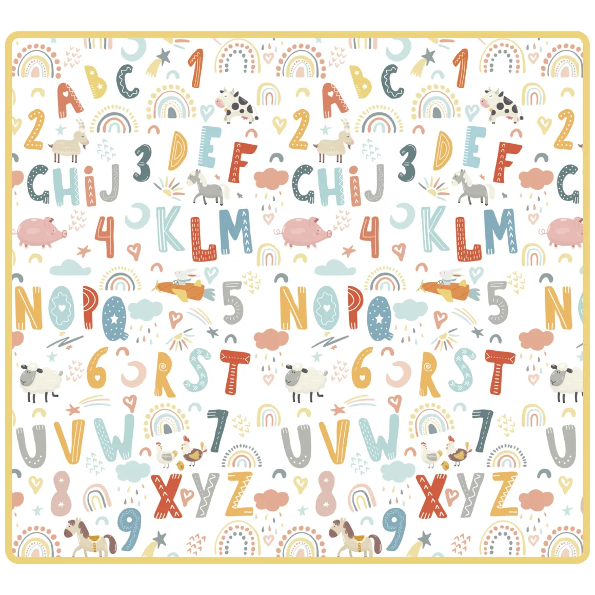 Il design nordico si adatta con stile a ogni ambiente: da un lato un simpatico percorso che si snoda tra casette, alberelli e simpatici animaletti e dall’altro lato nuvolette, arcobaleni, numeri e lettere. I materiali morbidi e sicuri lo rendono perfetto già dai 10 mesi.