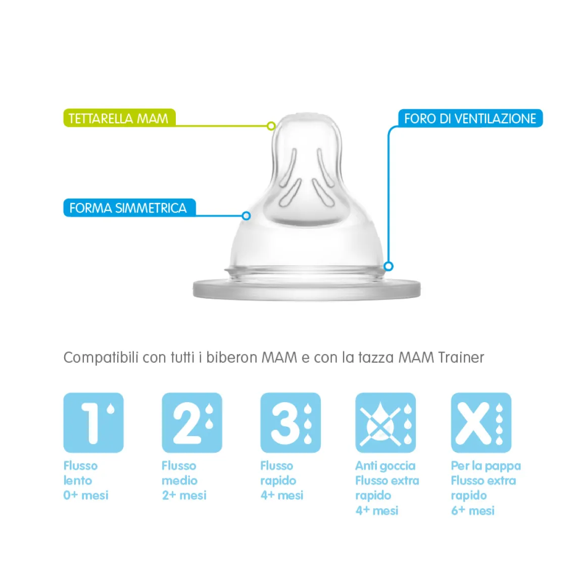 Perfetto per tutti i biberon MAM dall’imboccatura larga e i trainer MAM