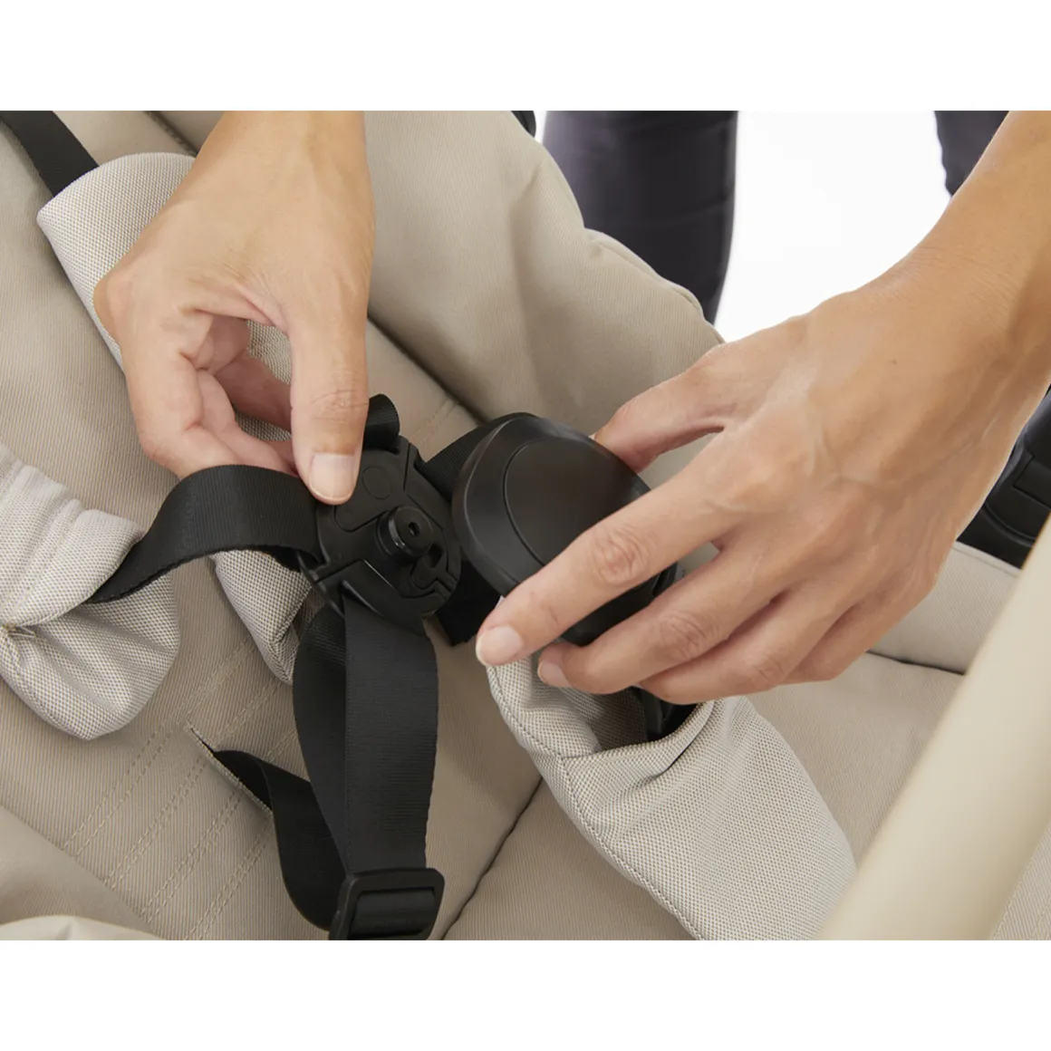 Sistema di ritenuta a 5 punti con fibbia magnetica per una veloce e agevole chiusura e apertura.