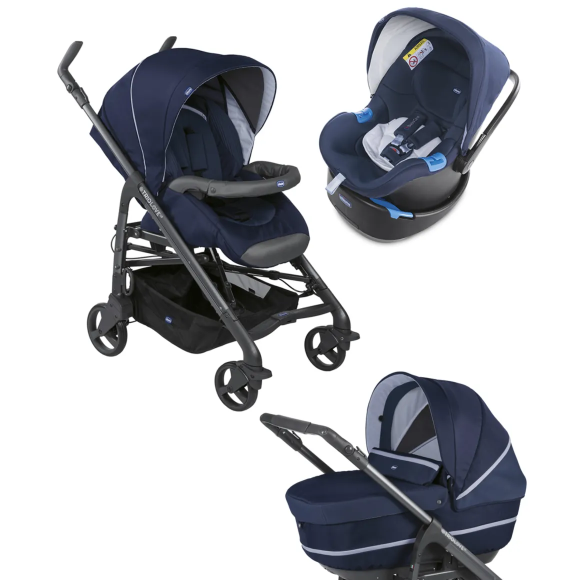 Trio LOVE Up è la soluzione completa per il trasporto del bambino da 0 a 3 anni: