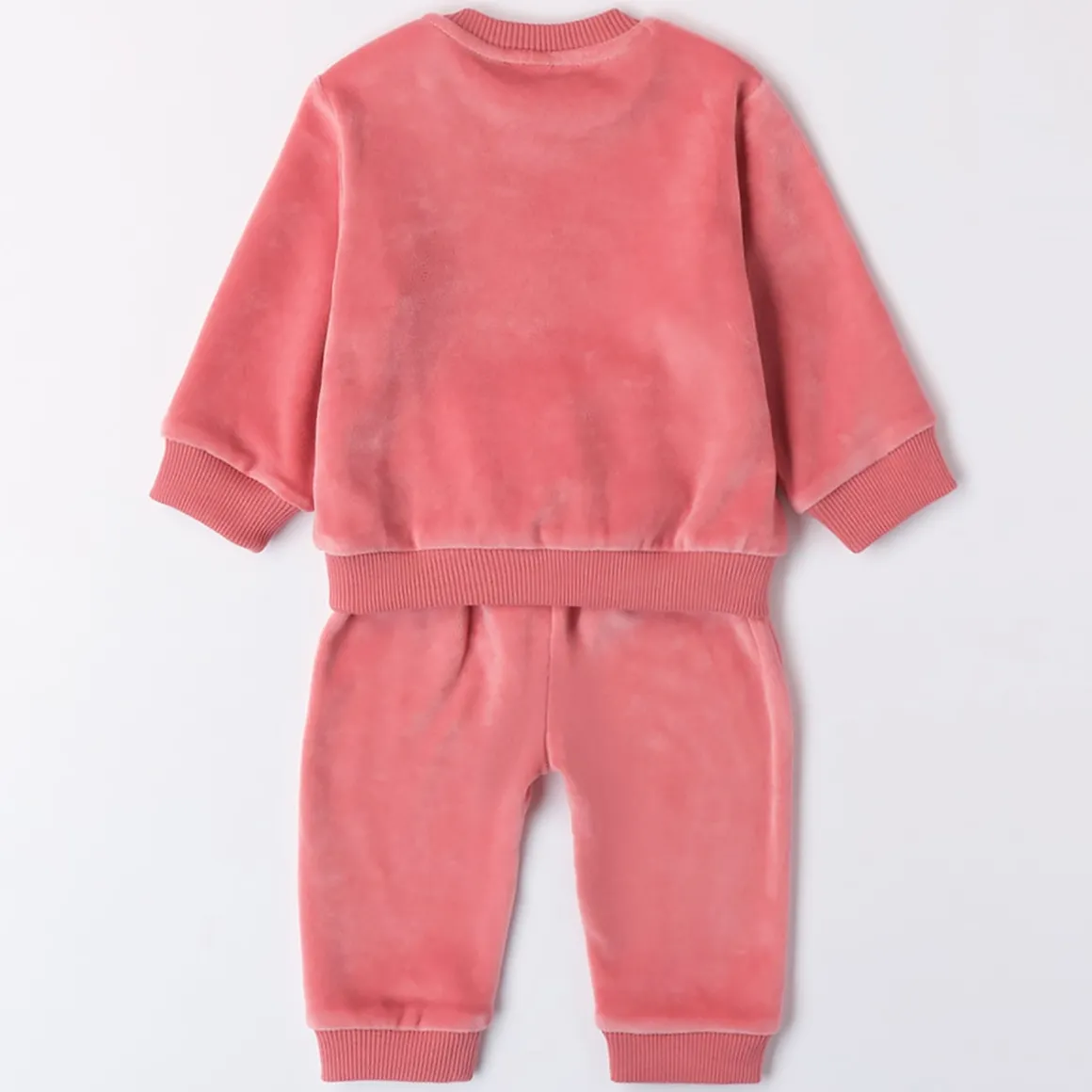 Tuta neonata iDO 1-24 mesi realizzata in ciniglia. Il modello è composto da felpa e pantalone. La felpa presenta apertura sulla spalla con bottoni e ruches in arricchimento sul fondo manica. Fantasia tinta unita. Il pantalone ha vita elasticizzata con bottoni e polsini sul fondo gamba. Scopri tutta la selezione di Completi bimba iDOMini sul sito!