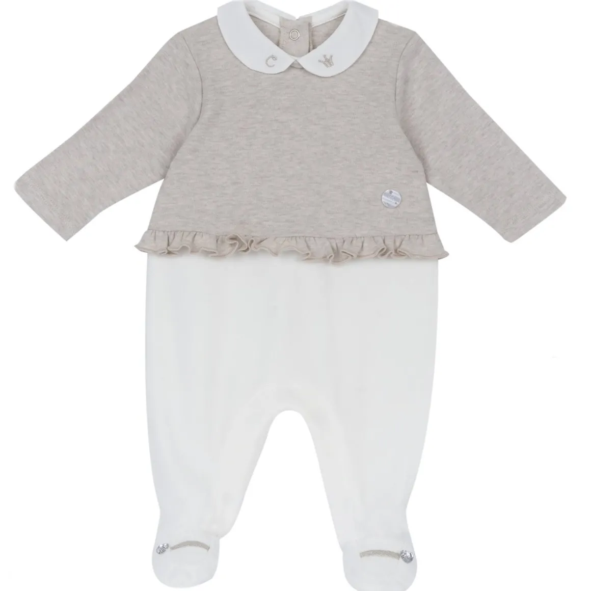 - Tutina in interlock ciniglia con colletto baby in tessuto