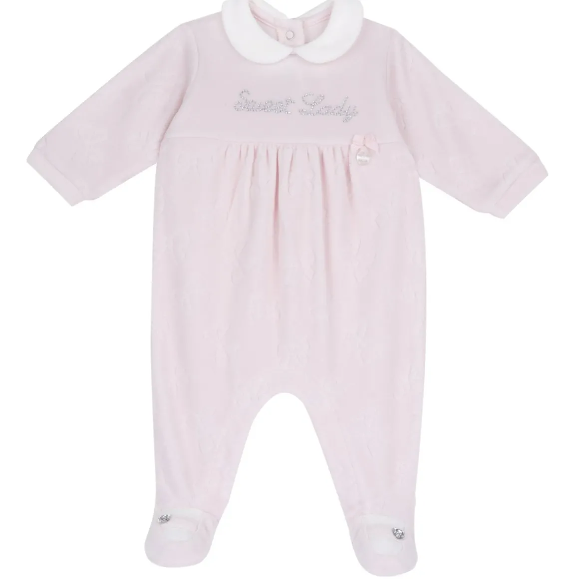 - Tutina in ciniglia jacquard con colletto baby bianco
