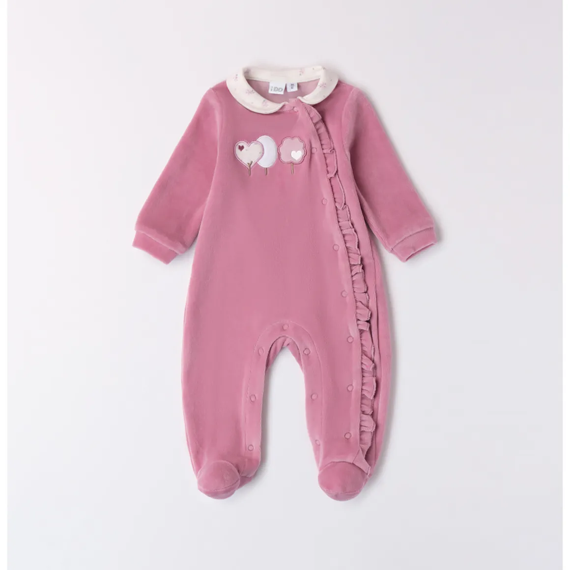 Tutina per neonata iDO 0-18 mesi in ciniglia. Il modello presenta apertura frontale e nel sottogamba con bottoni a pressione per agevolare il cambio e la vestizione. La tutina è realizzata in fantasia tinta unita con ruches in arricchimento. Scopri tutta la selezione di Tutine neonata iDOMini sul sito!