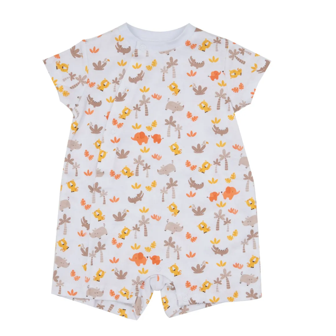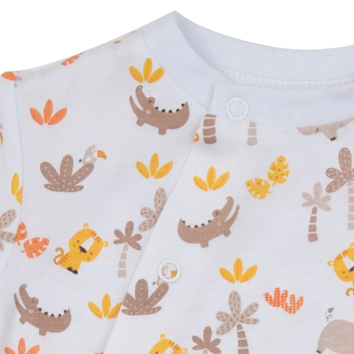 Tenera tutina jersey da bambino. Il capo si presenta con base bianca e stampa allover a tema animaletti arancioni e gialli. La vestibilità è morbida e pratica grazie ad apertura completa sul davanti e sul cavallo con bottoni a clip. Accessori non in vendita. La confezione contiene solo il capo d’abbigliamento