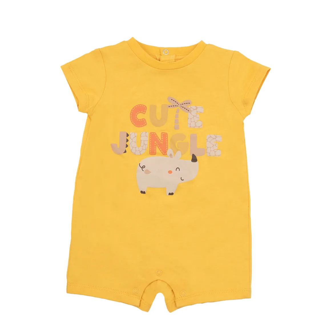 Tenera tutina jersey da bambino. Il capo si presenta in tinta unita giallo con stampa simpatica animali della giungla. La vestibilità è morbida e pratica grazie ad apertura sulla schiema e sul cavallo con bottoni a clip. Accessori non in vendita. La confezione contiene solo il capo d’abbigliamento