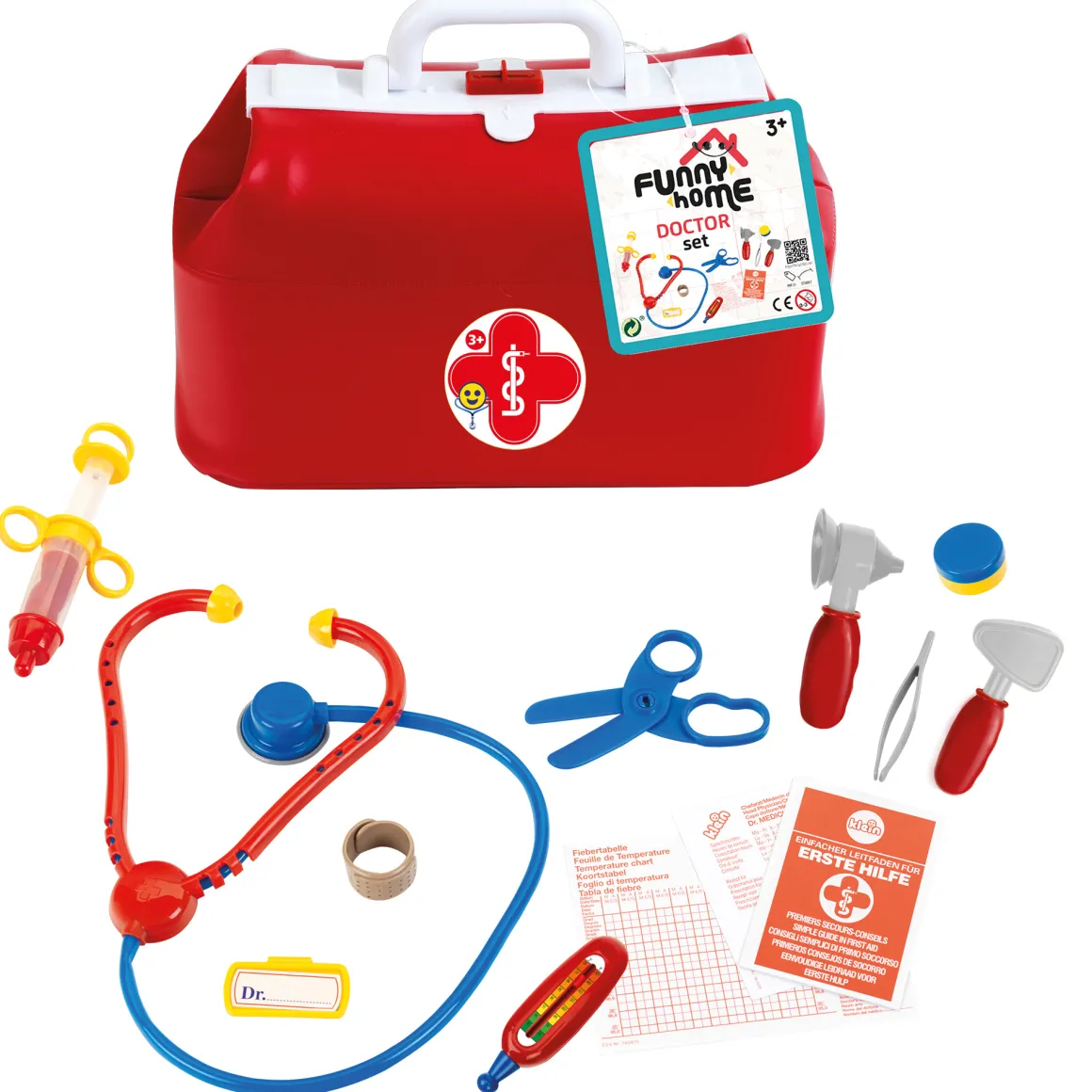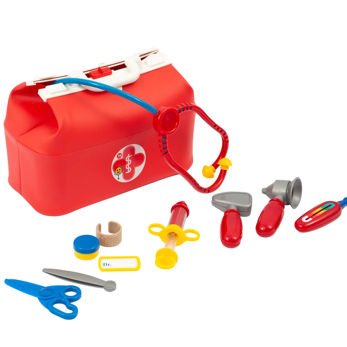 Valigetta professionale in similpelle e 13 accessori inclusi tra cui stetoscopio, otoscopio, termometro, pinzetta, siringa, forbici e molto altro.