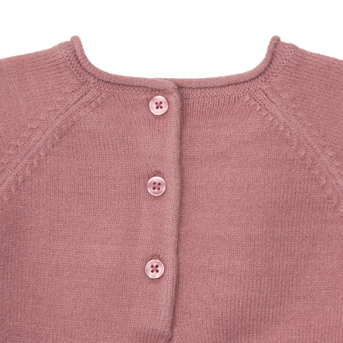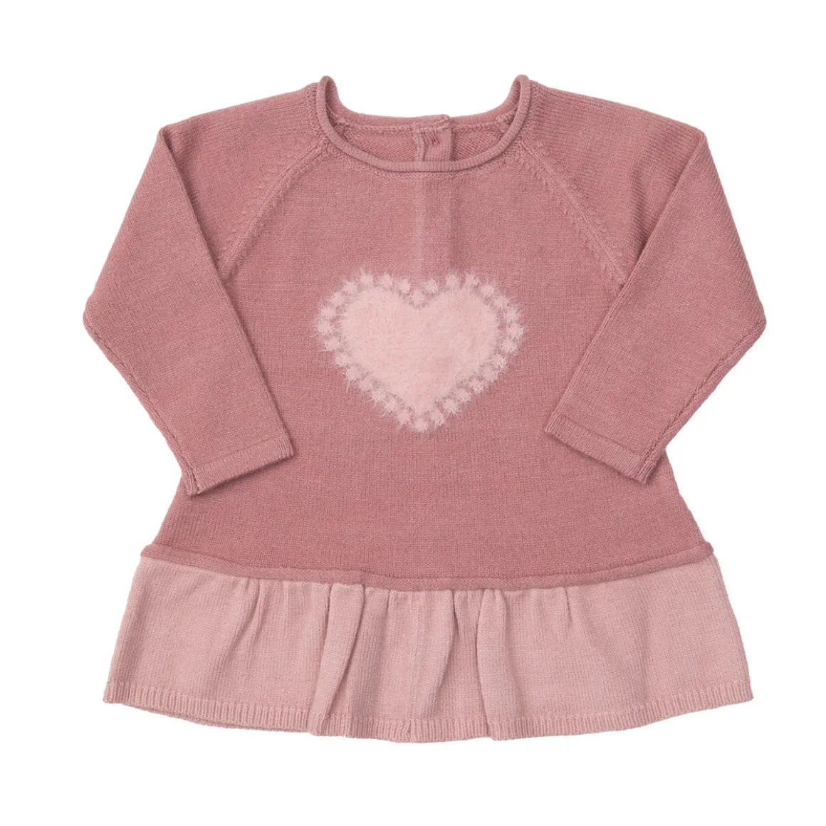 Tenero vestito tricot manica lunga da bambina. Il capo si presenta in tinta unita rossa antico con intarso “cuoricino”; la parte bassa presenta una gonna larga in tonalità più chiara. La vestibilità è morbida e pratica grazie ai bottoni sulla schiena. Accessori non in vendita. La confezione contiene solo il capo di abbigliamento