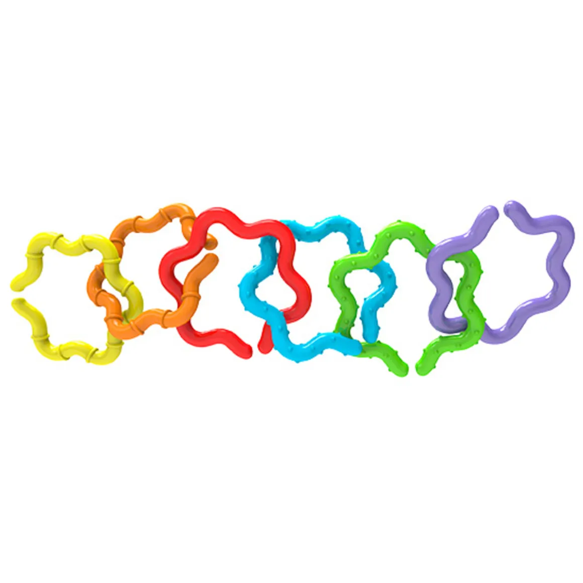 Questo giocattolo è ideale anche per la fase della dentizione, poiché i bambini possono mordicchiare in sicurezza gli anelli morbidi e resistenti, offrendo sollievo alle gengive sensibili.